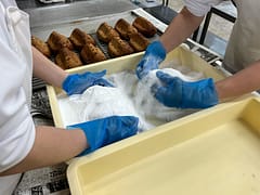そんなカナン牧場のシュトーレンは、伝統的な製法を守り続け、この季節から仕込み始め、じっくりと熟成させ、11月後半から食べごろを迎えられるようにしています。今は日々パン製造の合間を縫って、一生懸命に生産に励んでおり、今年の目標生産数は3000本以上を目指しております。