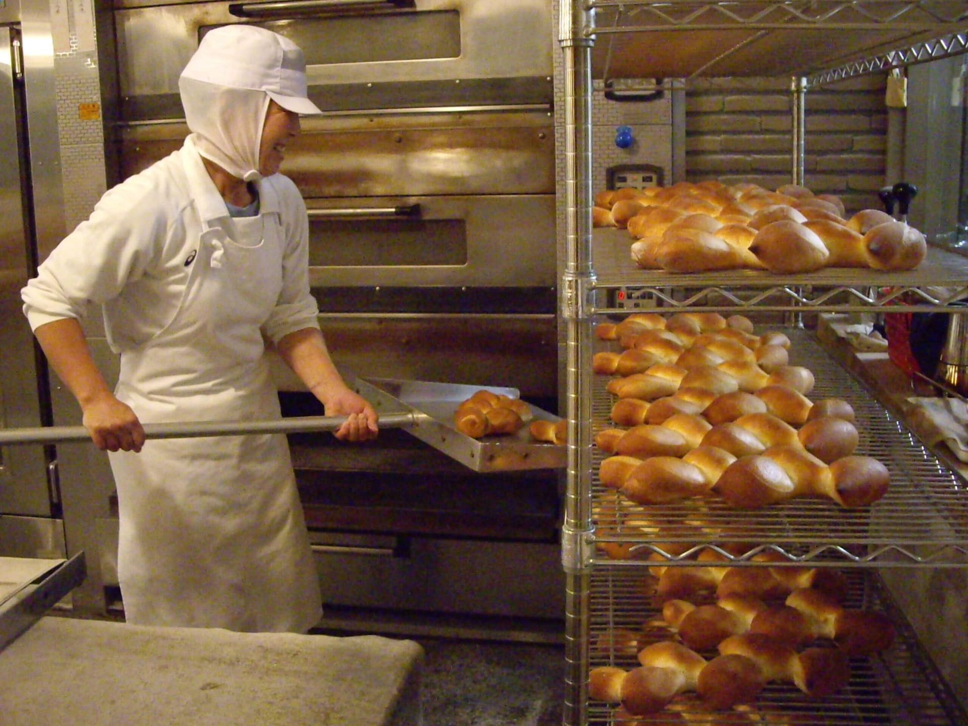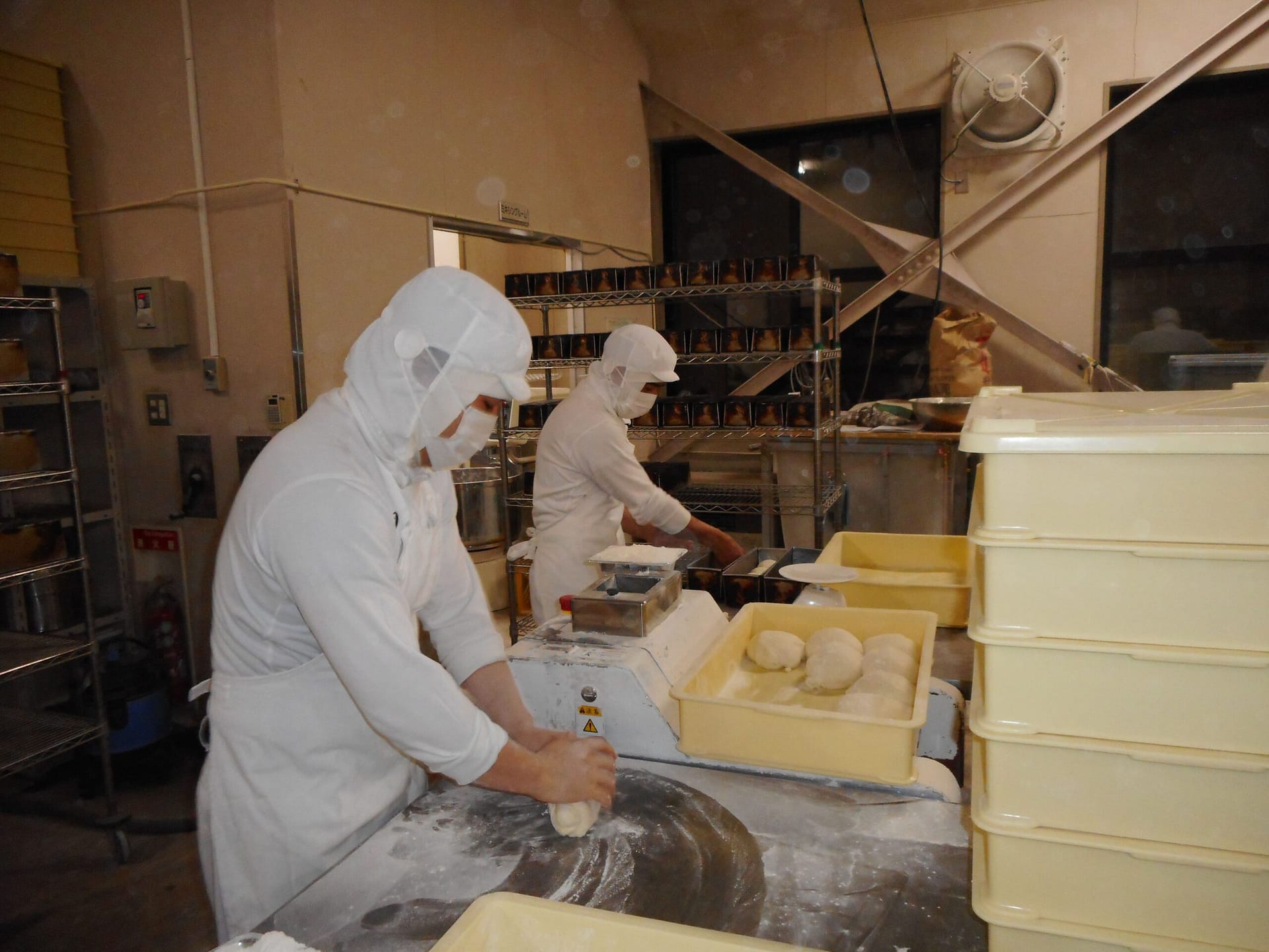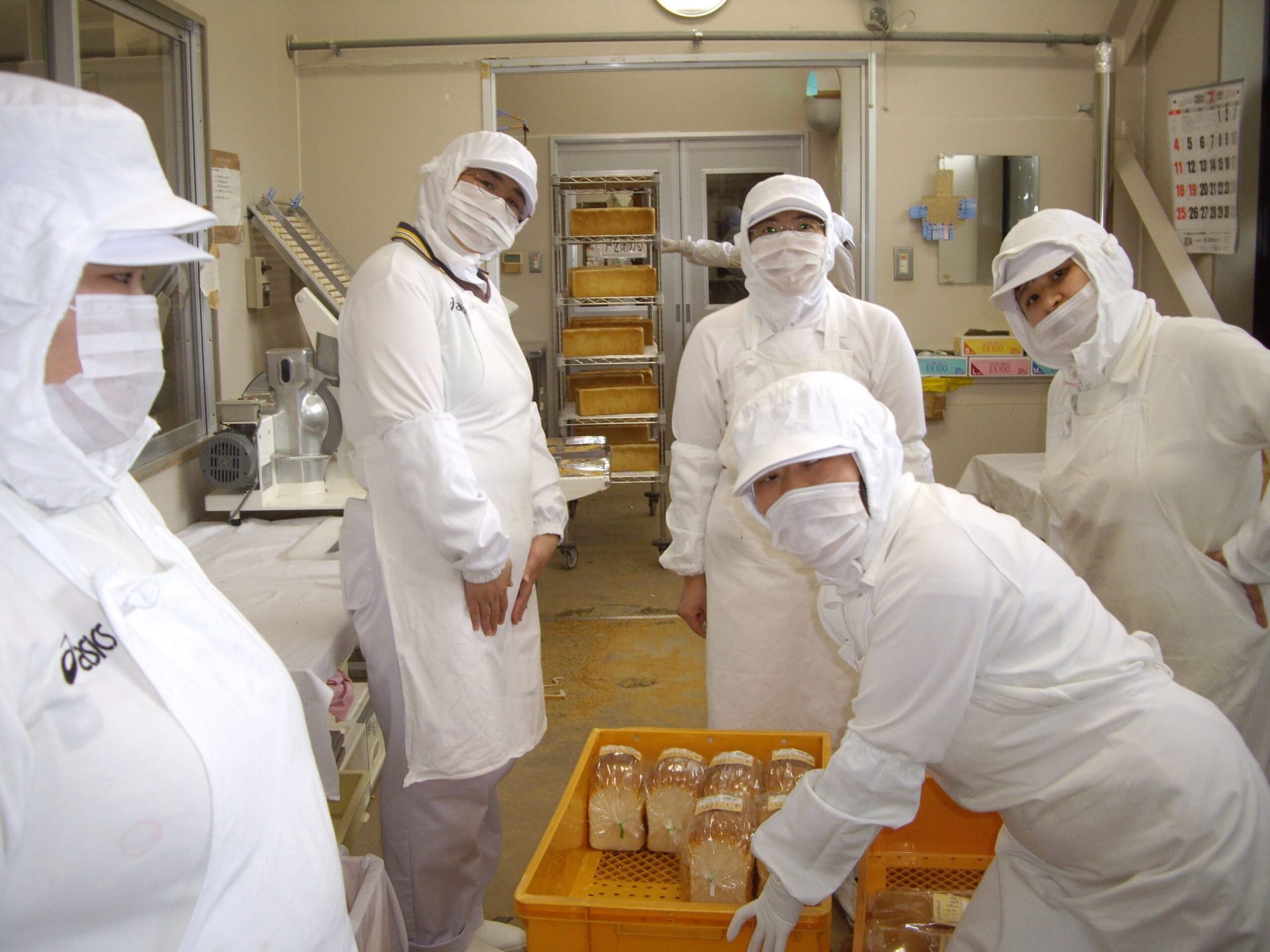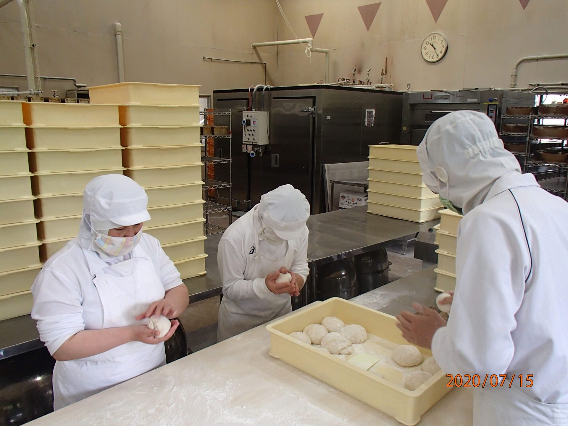 職員と従業員が、毎日、手作業で心を込めてパンの製造を行っています。